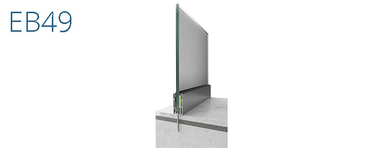 Ένα σύστημα γυάλινου κιγκλιδώματος, με βάση πλάτους 49mm, χωρίς ενδιάμεσα κατακόρυφα στοιχεία στήριξης. Προσφέρει επιλογή υάλωσης ανάμεσα σε δύο διαφορετικά πάχη (13,5mm και 17,5mm). Παρέχει τη δυνατότητα ενδοδαπέδιας ή επιδαπέδιας τοποθέτησης της βάσης.